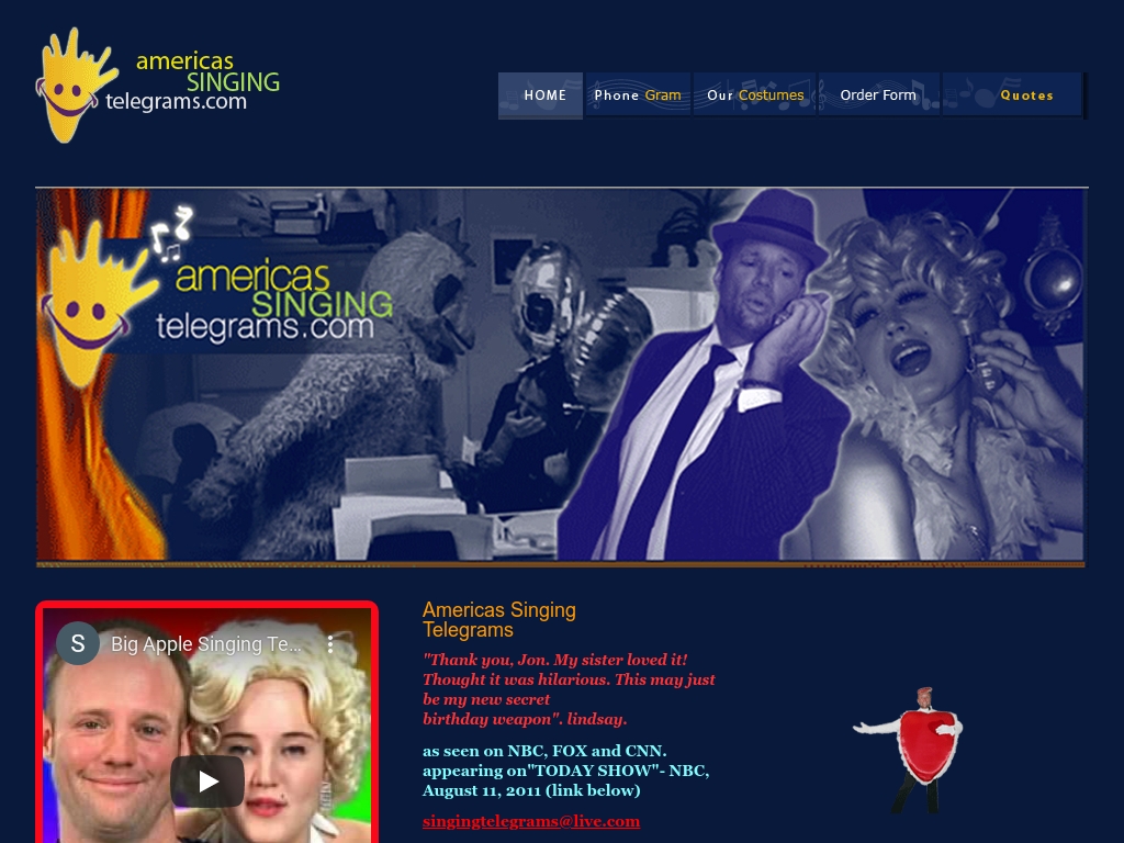 A singing telegram sometimes called a sing o gram is a highly enjoyable customized 10 to 15 minute music and comedy. Up to 3 songs for 150. We figure that if you booked the real Tina for someones birthday shed probably sing.